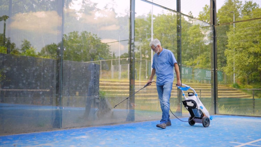 “Een keer in de twee weken behandel ik de banen met MO5 Sport. Per baan duurt het een kwartier. Ik zie duidelijk een stijgende lijn. We hebben hier geen problemen meer met algen, ook niet op momenten dat de algendruk in Nederland hoog is. Ik raad andere verenigingen écht aan om preventief te werken. Als de banen eenmaal groen worden door de algen, ben je te laat.”